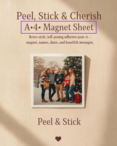 Material: High-quality photo paper with a durable magnetic backing and self-adhesive front.